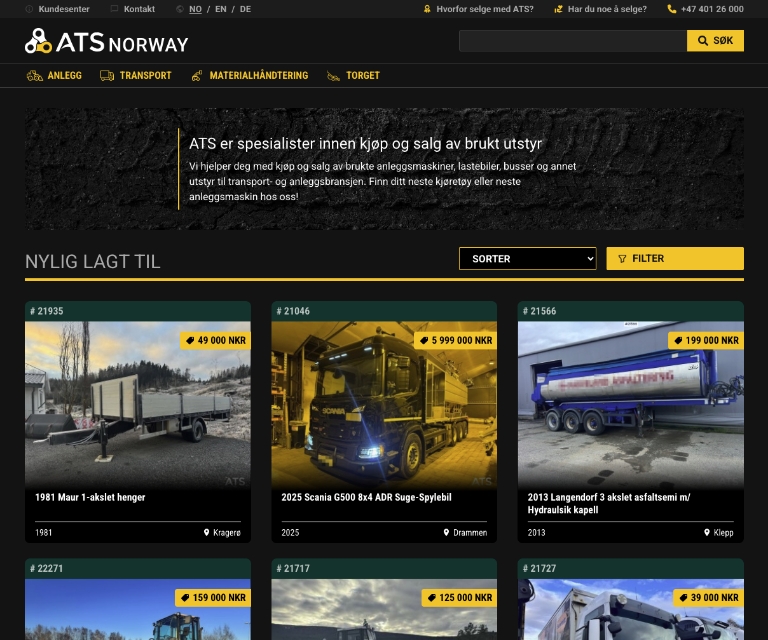 The company combines online listings with advisory-led sales processes, helping equipment owners’ market and sell assets to a broad international buyer audience. Through its marketplace model, ATS Norway has established a strong position within the Norwegian market.