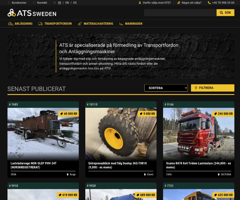 Working closely with contractors, fleet owners and industrial companies, the business supports sellers throughout the transaction process — from documentation and marketing to buyer engagement. Through the group’s broader buyer network, equipment listed through ATS Sweden gains exposure to a wide international audience.