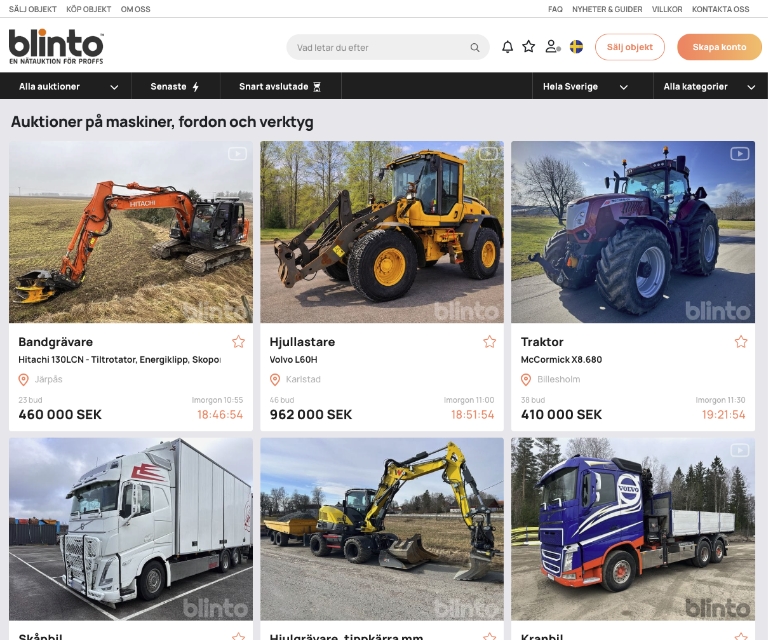 Founded in 2018 in Växjö, Sweden, Blinto is a digital auction marketplace specializing in the sale of heavy machinery, construction vehicles and professional equipment.